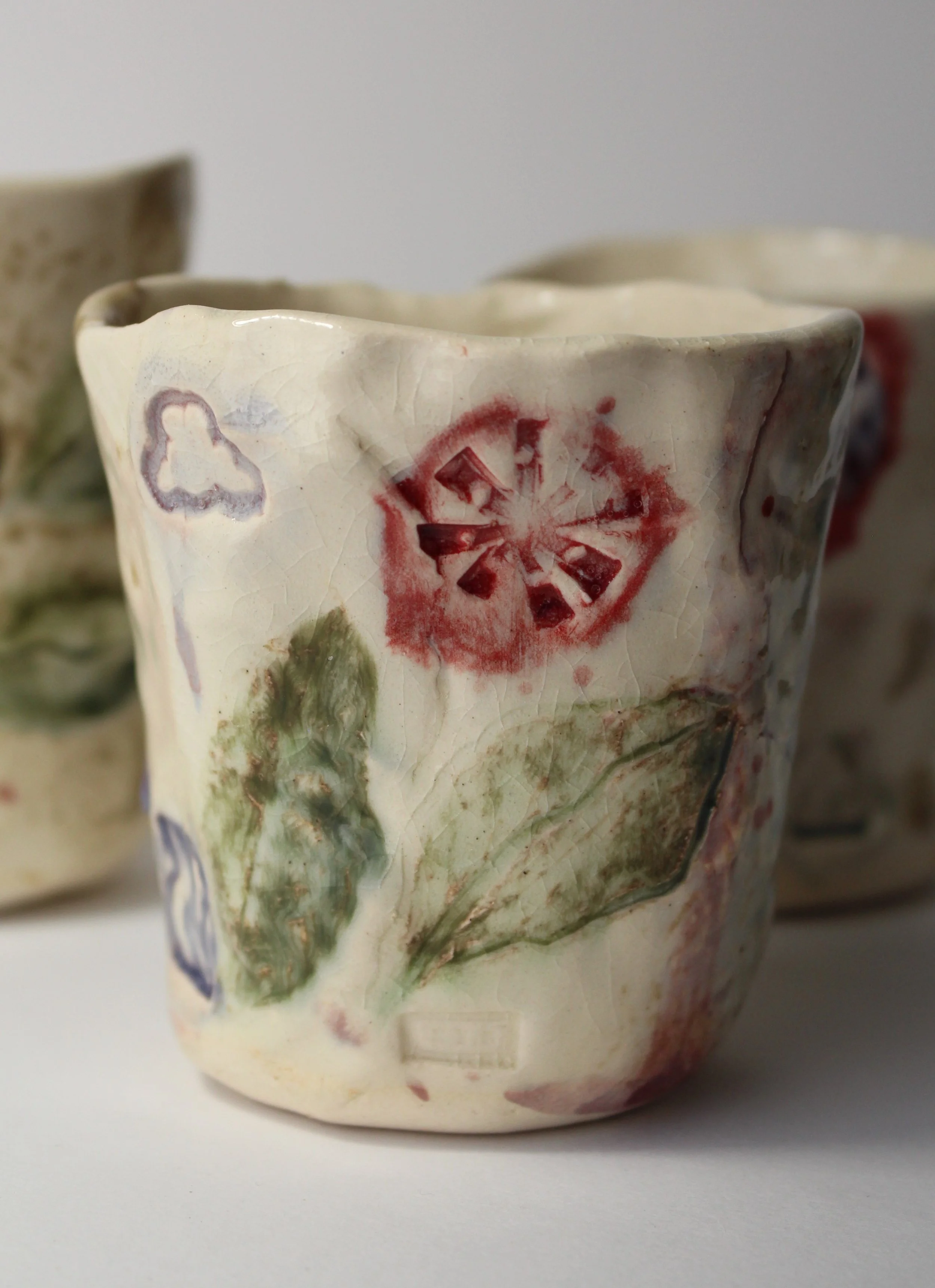"Fresh Emissions" 2025, 10 x 5 x 5, stoneware, underglaze, slip, glaze, studio waste